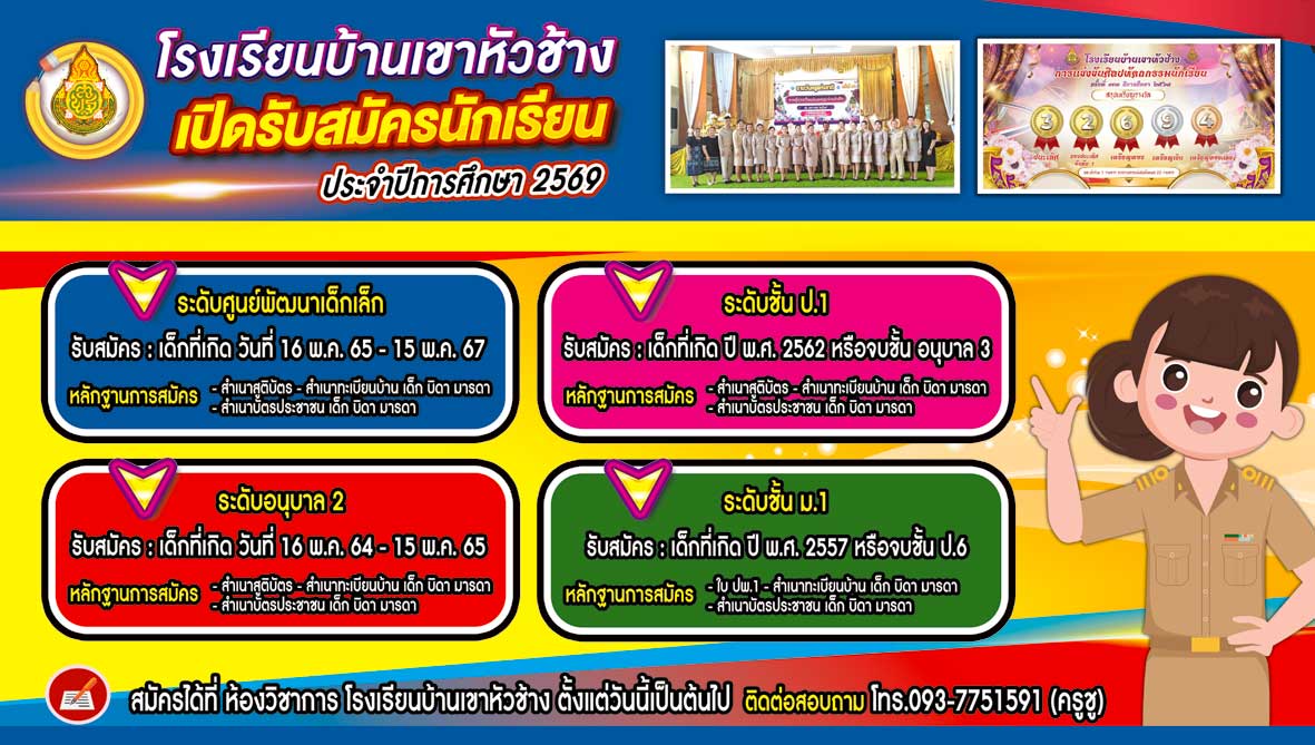 ยินดีต้อนรับเข้าสู่เว็บไซต์ โรงเรียนบ้านเขาหัวช้างค่ะ...