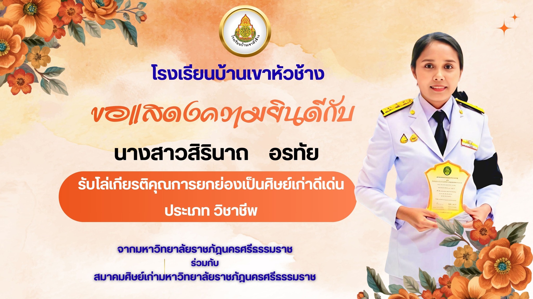 ขอแสดงความยินดีกับ นางพนิดา ซิบยก รองผู้อำนวยการโรงเรียนบ้านเขาหัวช้าง ในโอกาสได้รับรางวัล "คุรุชน คนคุณธรรม" ประเภทผู้บริหารสถานศึกษา 24 ก.พ. 68